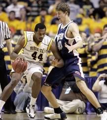 Murray State University (our hometown University) won the OVC tournament tonight. I have to admit the new coach is awesome. He has in the past few years made a team to be reckoned with. They pretty much demolished Samford with a 74 - 57 win. So it is on to the Big Dance. Although MSU will probably get slaughtered at the NCAA Tourny it would be fun to watch them win one. They have it in them. Just look at the scores for this years games with bigger teams:Tennessee 64, Murray State 53