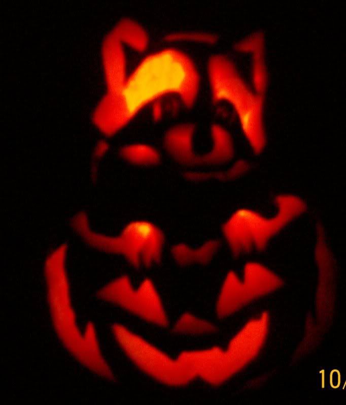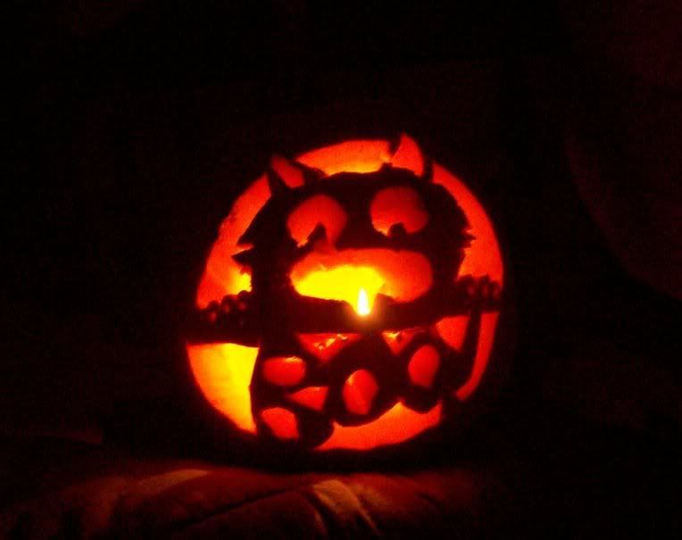 The last week or so has been wild for me. I have been so busy that I have hardly time to do anything much less blog. I wanted to show you some pictures of the Hughes Pumpkin Massacre of 2006. This was an all night project and all together I carved 6 pumpkins.